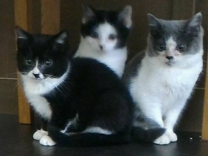 左から、ネーロ、ビアンカ、グリジアの3匹です。 応募が複数ありましたのでネーロ、ビアンカの募集は一時中止とさせていただきます。ありがとうございました。 グリジアについてはまだ募集中です。 但し、引渡し条件がございますので、その内容に該当する場合のみの引渡しとなります。 尚、引渡し時期については、下記の3つの条件が整った時期となります。 1:トイレなどのしつけ 2:人間に対して攻撃をしない 3:健康状態が回復している 相談の上、引渡し時期を決めさせて頂きます。